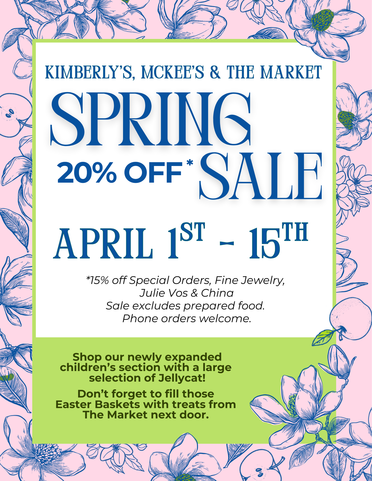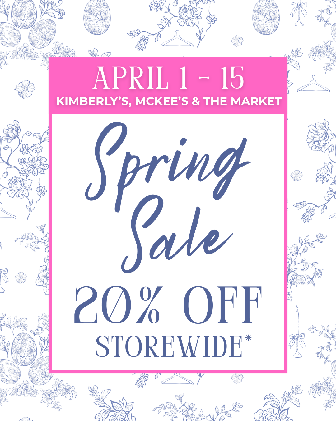 20% off at Kimberly's, McKees, and The Market